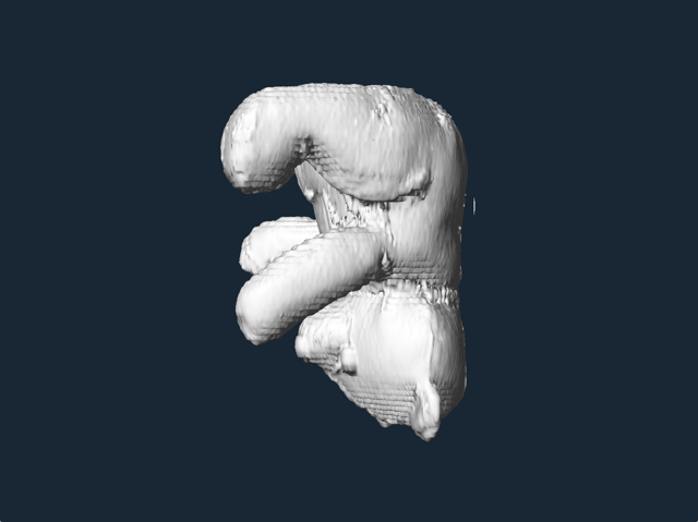 This dataset is high-resolution enough that you can learn a bit about skeletal anatomy interactively exploring the bone isosurface. See if you can find sesamoid bones, for example.$SCIVIS/util/iso -i $SCIVIS/data/3d/vfrhand.nrrd @$SCIVIS/data/3d/vfrhand-cam.txt -v 290 $SCIVIS/util/iso -i $SCIVIS/data/3d/vfrhand.nrrd @$SCIVIS/data/3d/vfrhand-cam.txt -v 1210- The hand dataset is also large enough that volume rendering it with multiple threads provides real benefit. The CSIL Macs should have at least 4 cores, which informs the "rendr go -nt 4" below, but you can do the following to learn the real number of cores: