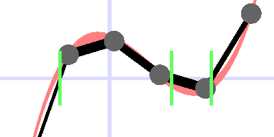 We can use the rplotr command to make illustrations of node-centered vs cell-centered samples from the node.txt and cell.txt files generated above:./rplotr plot -i cell.txt -xmm 0 1 -ymm -1 1 -s 700 80 -k zero -dd 40 -o cell.png